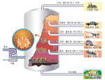 원유는 끓는점이 다른 물질들의 혼합물로, 증류탑에 넣고 가열하면 위쪽에서 끓는점이 낮은 성분부터 먼저 증류되어 나온다.